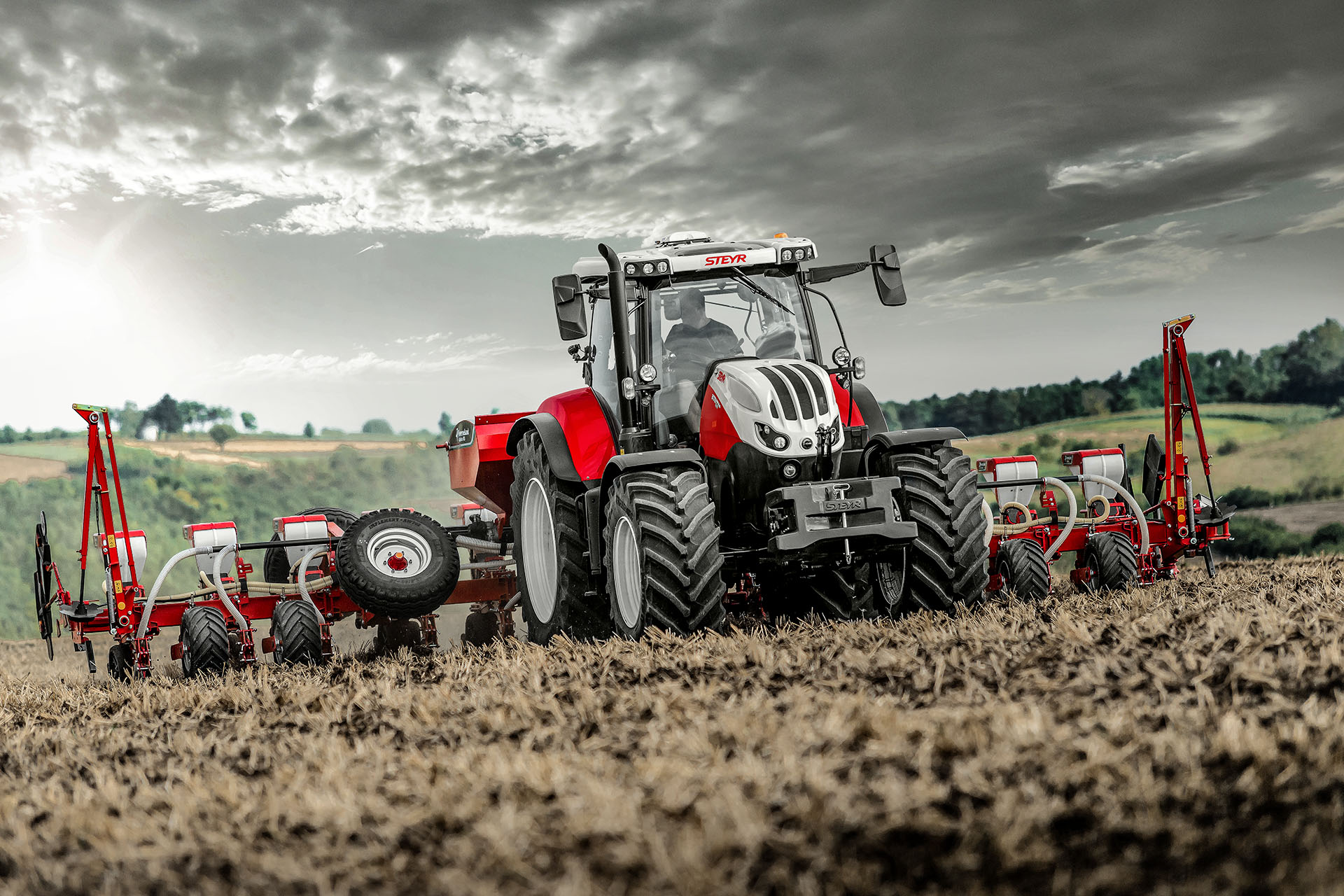 Mit seinen drei Modellen von 288 PS bis 340 PS ist der TERRUS CVT sowohl für den schnellen Transport als auch für schwere Feldarbeiten prädestiniert. Aber er bietet dir auch außergewöhnliches Maß an Komfort: eine gefederte Vorderachse in Kombination mit einer luxuriösen und bemerkenswert leisen Kabine machen die Arbeit zu einer entspannten und ermüdungsfreien Angelegenheit. Mit an Bord: die neuesten Technologien S-TECH Precision farming, STEYR Guide automatisches Lenksystem, STEYR Turn II automatisches Wenden, ISOBUS III und Easy-Tronic II Vorgewendemanagement sowie STEYR FieldOps Telematiklösungen. Allen voraus.